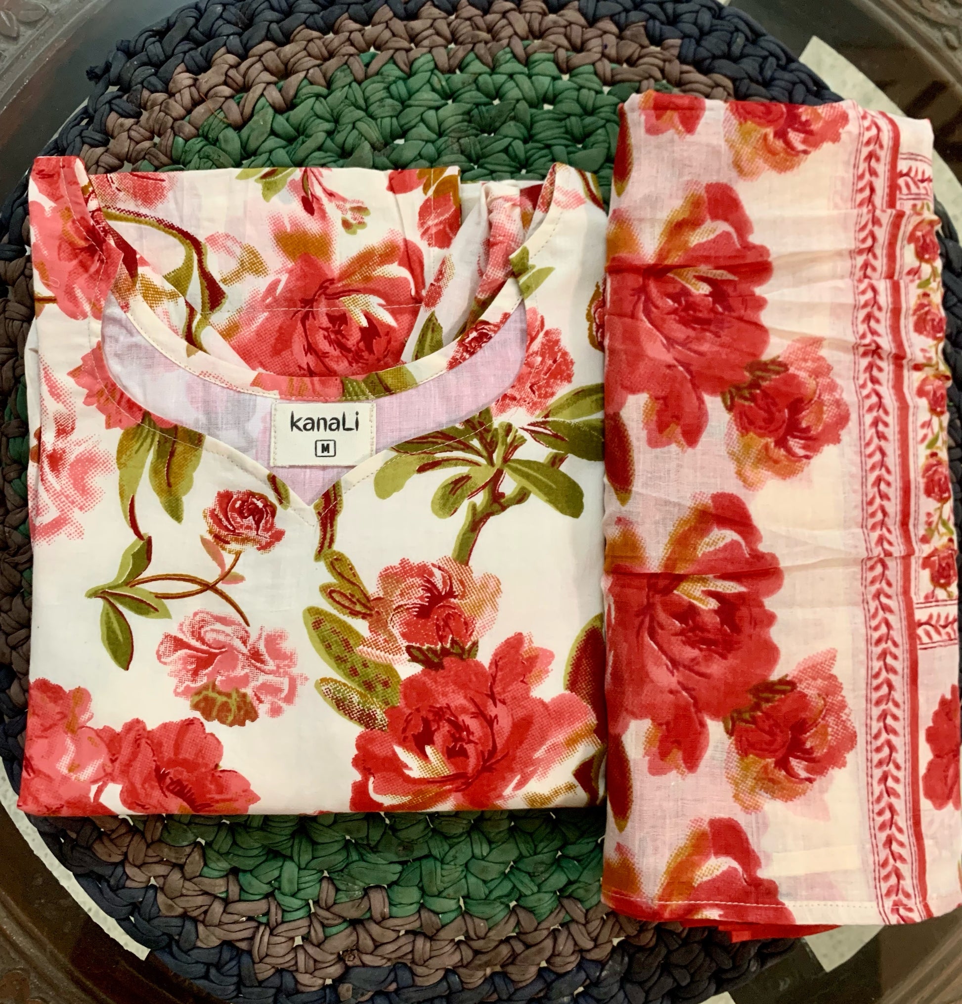 Red rose - Top and dupatta set